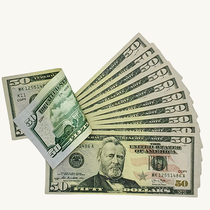 Prop Movie Money $50 Full print. 225 Pieces Double sided Prop dollar for education,video,movie set,TV
